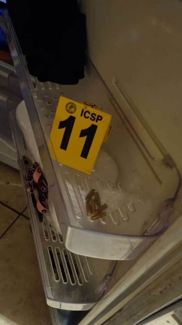 La policía también encontró en la casa una báscula digital gris dañada, una bolsa de plástico interior Diversas bolsas de plástico, un arma corta con la leyenda TITAN, con cargador con 5 cartuchos, credencial para votar a nombre de Limón R. O., una bolsa de plástico con hierba verde y seca, y una bolsa de plástico con 6 cartuchos en su interior.
