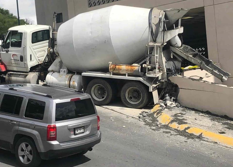 Afortunadamente el accidente no dejó personas lesionadas, pues el pesado vehículo cargado con dos toneladas de concreto, se estampó contra un muro de un estacionamiento.