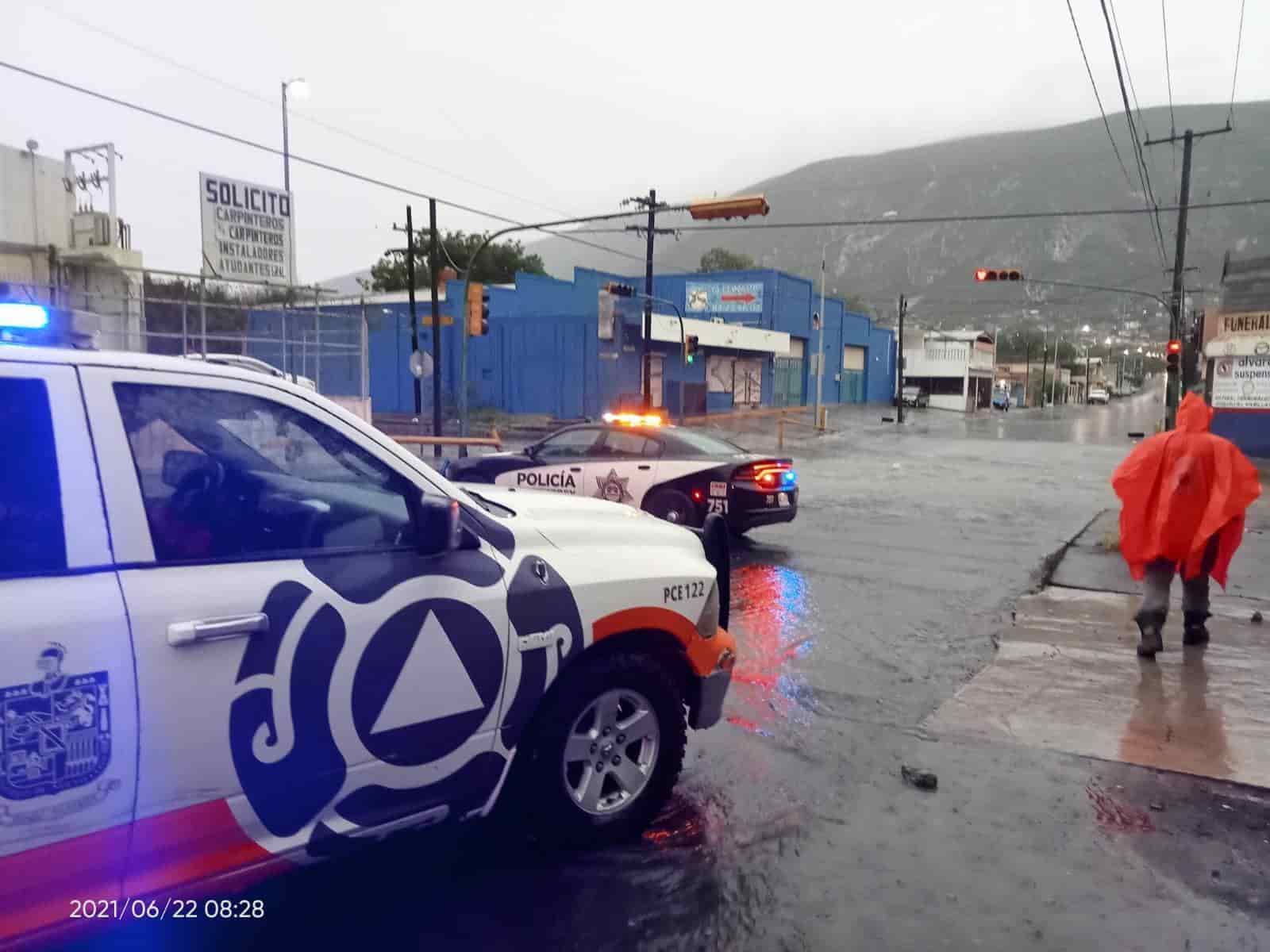 Ante la tormenta Protección Civil Nuevo León lleva a cabo un operativo en coordinación con unidades municipales y recomienda no cruzar ríos o arroyos y estar atentos a los escurrimientos.