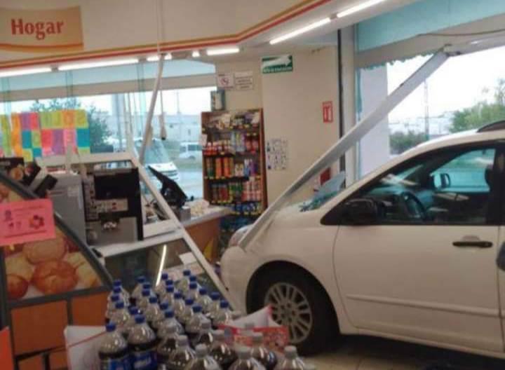 En el interior de una farmacia terminó con todo y su camioneta una conductora, luego de confundir los pedales del vehículo, en el municipio de Juárez.