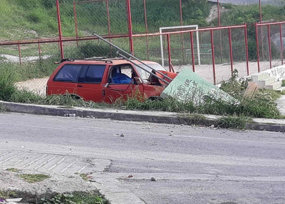 La camioneta subió hacia un parque y metros adelante se estrelló contra un muro de concreto de un registro de la luz mercurial de una plaza pública.