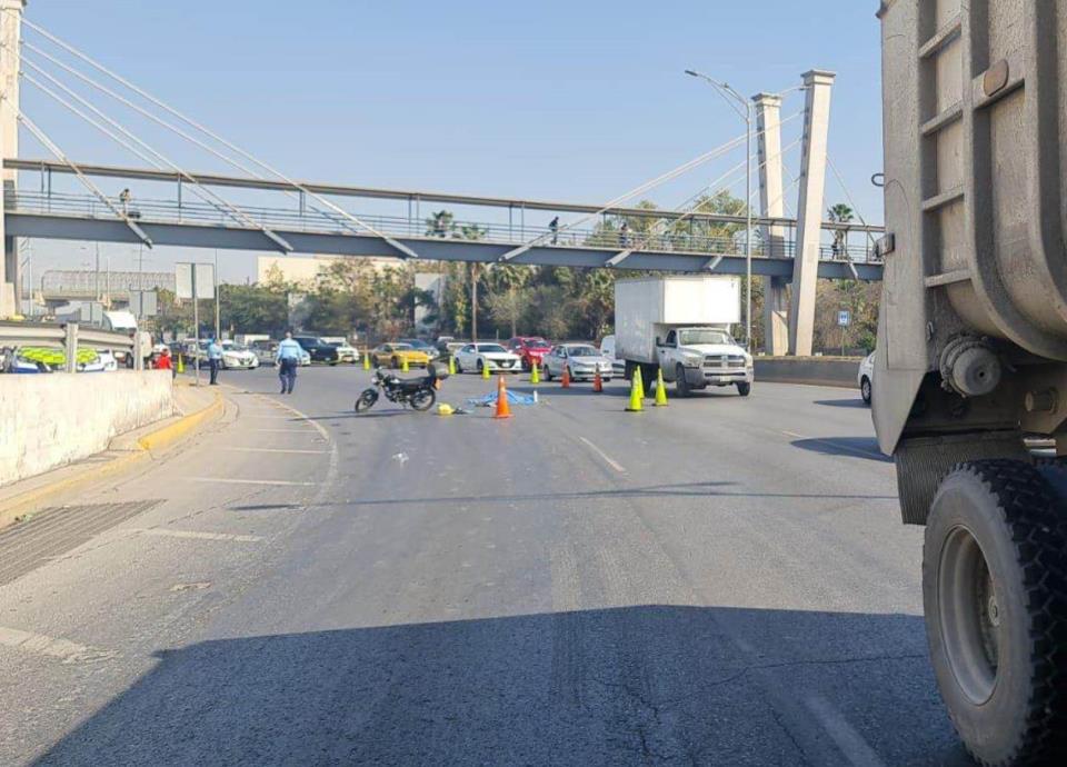 Elementos de Protección Civil Nuevo León acudieron al reporte accidente vial donde participa un tráiler y una motocicleta, el conductor está lesionado.