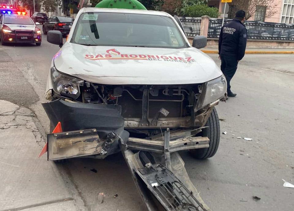 Una pipa cargada con más de 25 mil litros de gas licuado, se impactó contra una camioneta en la zona centro del municipio de Linares.