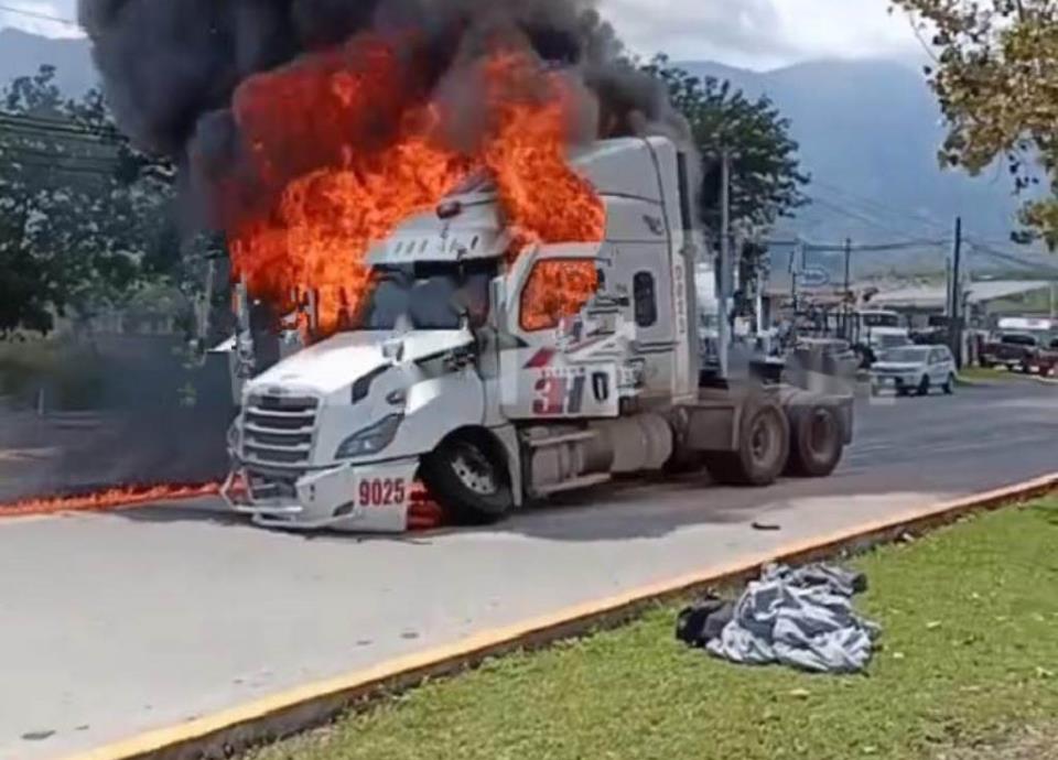 Una tractocamion terminó incendiándose por completo, después de chocar por alcance con otro vehículo pesado en un tramo de la Carretera Nacional, en el municipio de Allende, Nuevo León.
