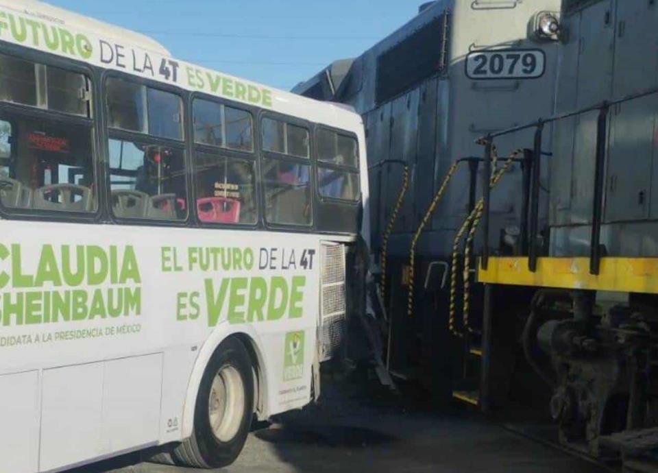 Un camión de la ruta urbana 400 no alcanzó a cruzar las vías a tiempo y terminó siendo impactado por el tren, dejando un saldo varios pasajeros lesionados, en el municipio de Santa Catarina.