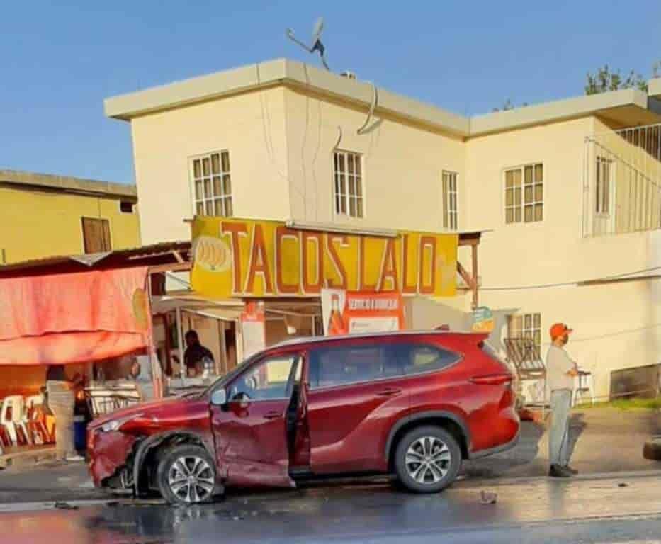 Los comensales del puesto de tacos, explicaron que fue la segunda camioneta, la que se pasó el señalamiento de alto.