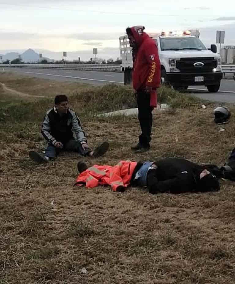 En un hecho poco usual, una motocicleta se estrelló de frente contra una bicicleta, en un tramo de la Autopista Allende-Cadereyta, dejando un saldo de dos personas lesionadas.