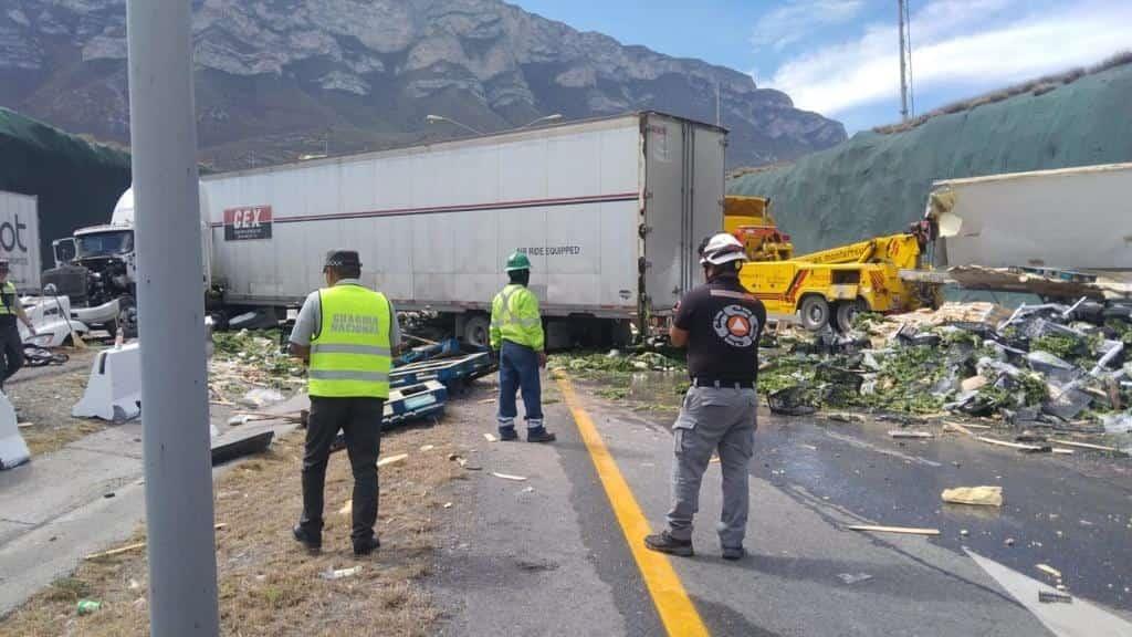 Mencionaron que presuntamente uno de los tráileres se quedó sin frenos, lo que provocó que terminara estampándose por alcance contra la otra unidad pesada.