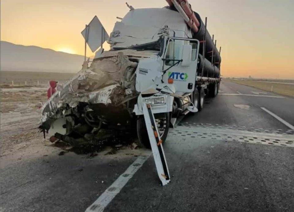 Mientras que el segundo de los tracto- camiones involucrados en el accidente es un Kenworth, que remolcaba una plataforma con tubos de acero.