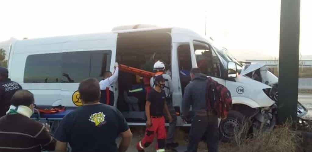 Monterrey N.L.- Ocho trabajadores de un Parque Industrial de Apodaca, terminaron con lesiones de consideración, al accidentarse el transporte de personal en el que se desplazaban.