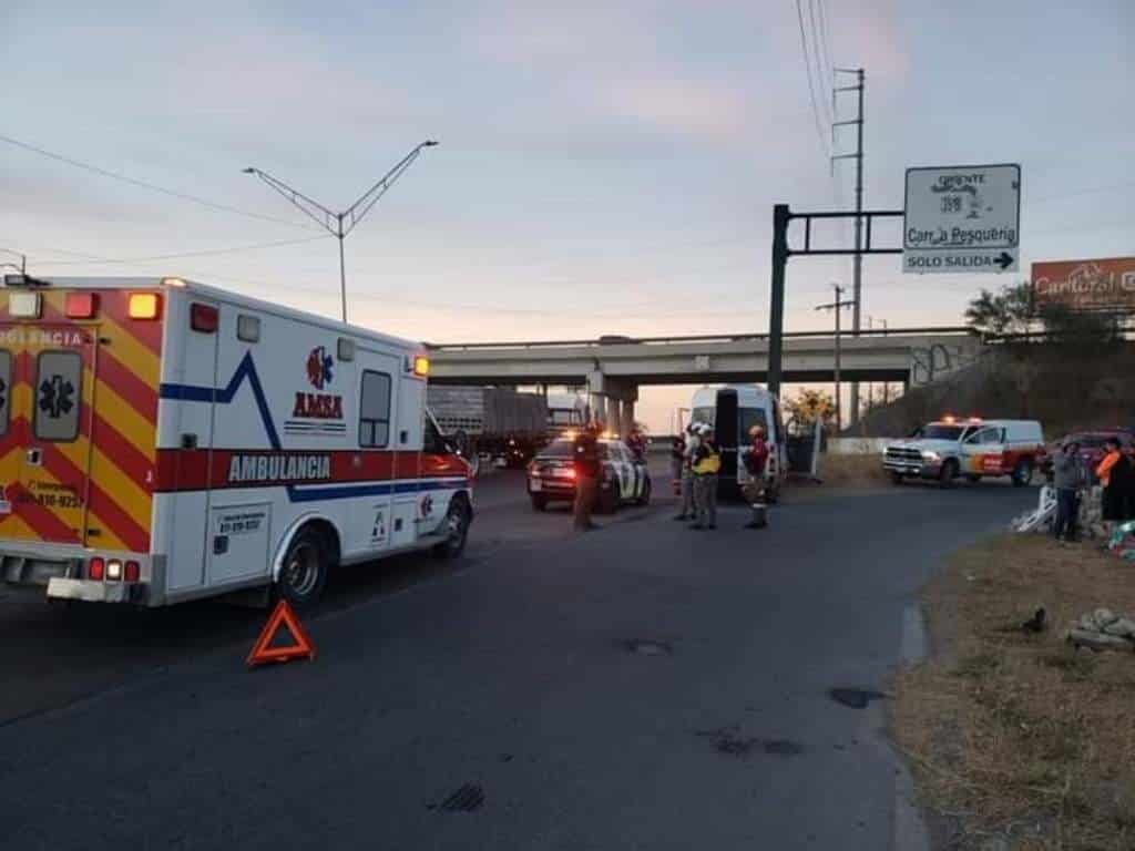 Protección Civil de Apodaca, informó que el accidente se reportó a las 07:00 horas de este jueves, en la Autopista al Aeropuerto a la altura del Puente de la carretera Juárez-Pesquería.