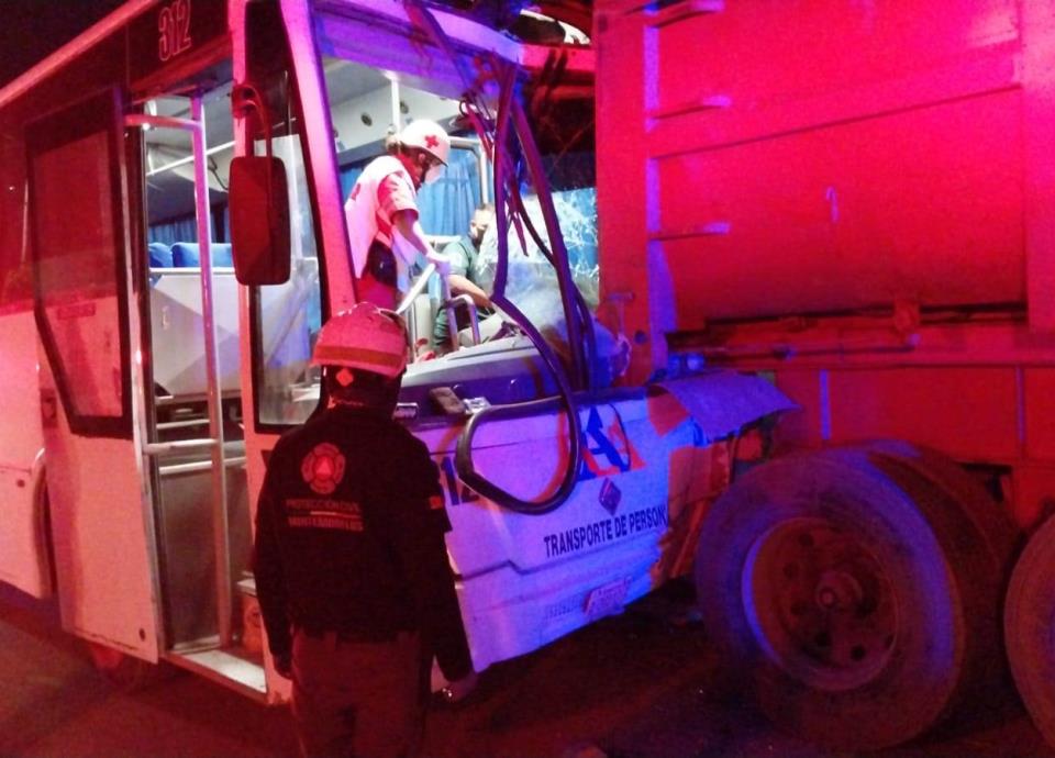 En la unidad viajaban 30 pasajeros, de los cuales 15 resultaron con lesiones leves, mientras que el conductor quedó atrapado de las piernas.
