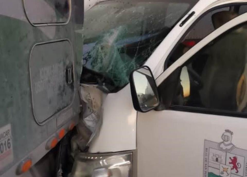 Un saldo de siete lesionados dejó un choque entre un tráiler y una camioneta de personal de Villaldama, esta mañana en la Carretera a Colombia, municipio de Salinas Victoria.