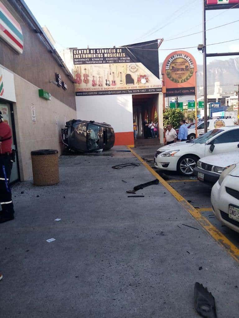 Monterrey N.L.- Al menos dos lesionados dejó un choque volcadura registrado esta mañana en el municipio de San Pedro en el que se vieron involucrados seis vehículos.