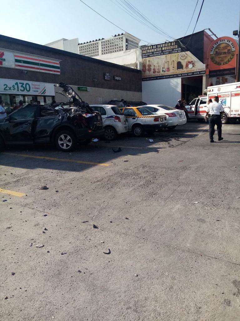 Los otros vehículos involucrados son un Yaris, Tsuru taxi, Altima, y Rav 4.