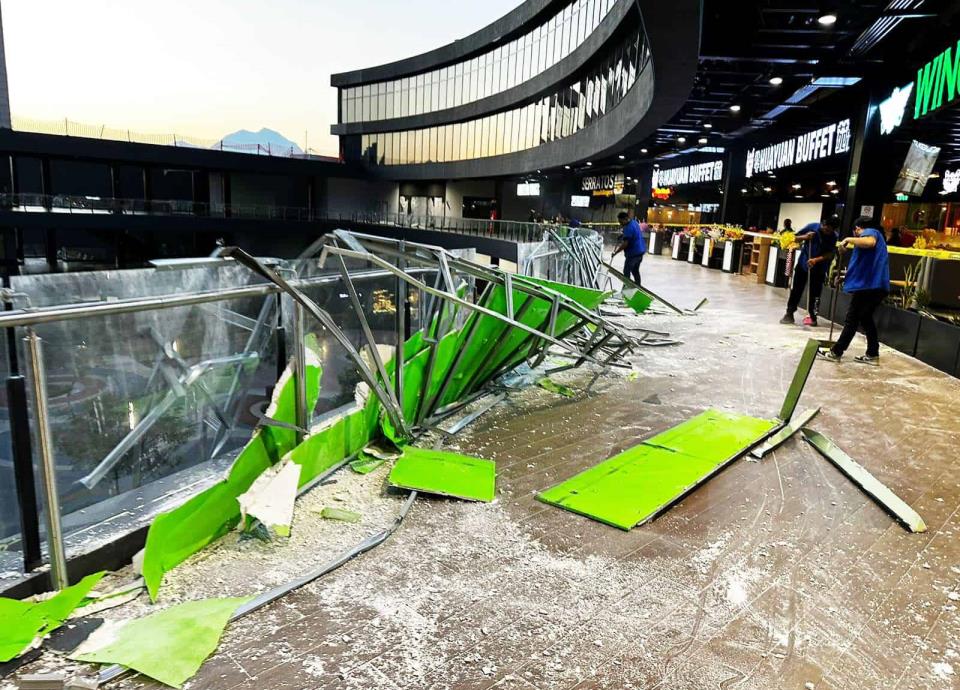 El desplome de la estructura de la plaza Sikara, ubicada en Paseo de los Leones, en la colonia Cumbres, fue reportada la noche del martes.