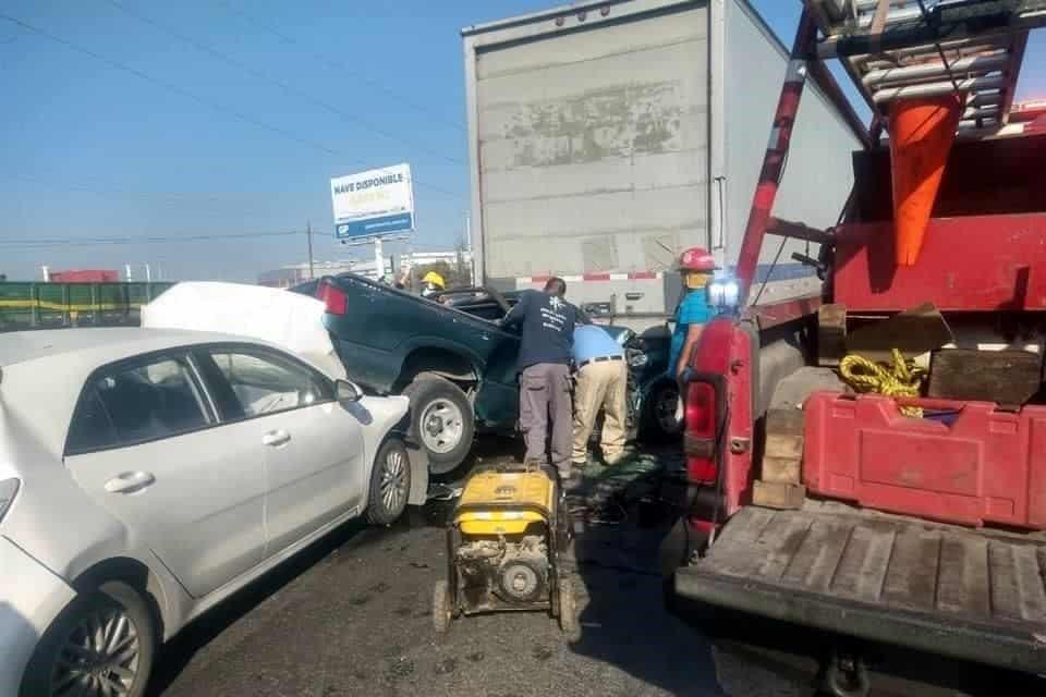 En el accidente, donde participaron cinco vehículos, una camioneta termino incrustada en la parte trasera de un tráiler cargado con mercancía.