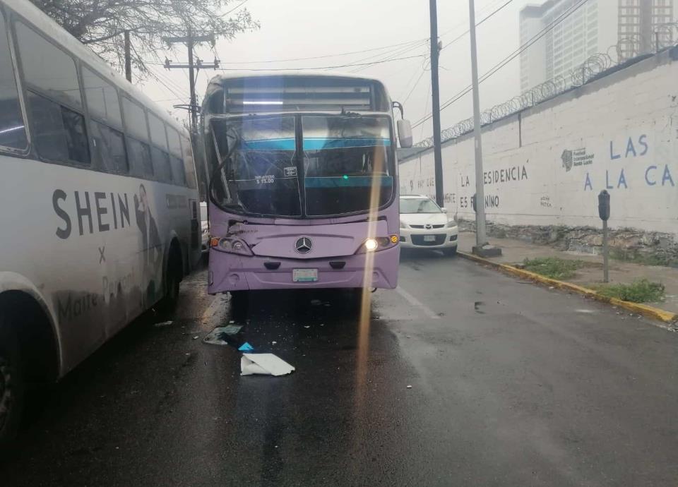 El choque entre dos transportes urbanos dejó a la pasajera de una de las unidades lesionada y quien tuvo que ser rescatada por una de las ventanillas, ayer en el centro de Monterrey.