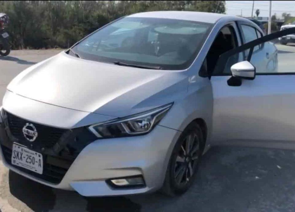 Uno de los vehículos participantes, es un auto de la marca Nissan, tipo Versa, con placas de circulación SKX-250-A, del estado de Nuevo León.