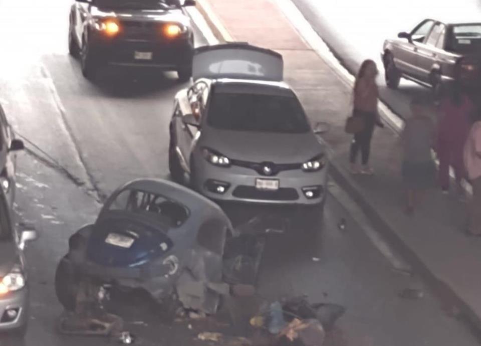 Tras dar varias volteretas se impactó con una camioneta Windstar, la cual quedó destrozada de la parte delantera, mientras otro coche participó en el accidente.
