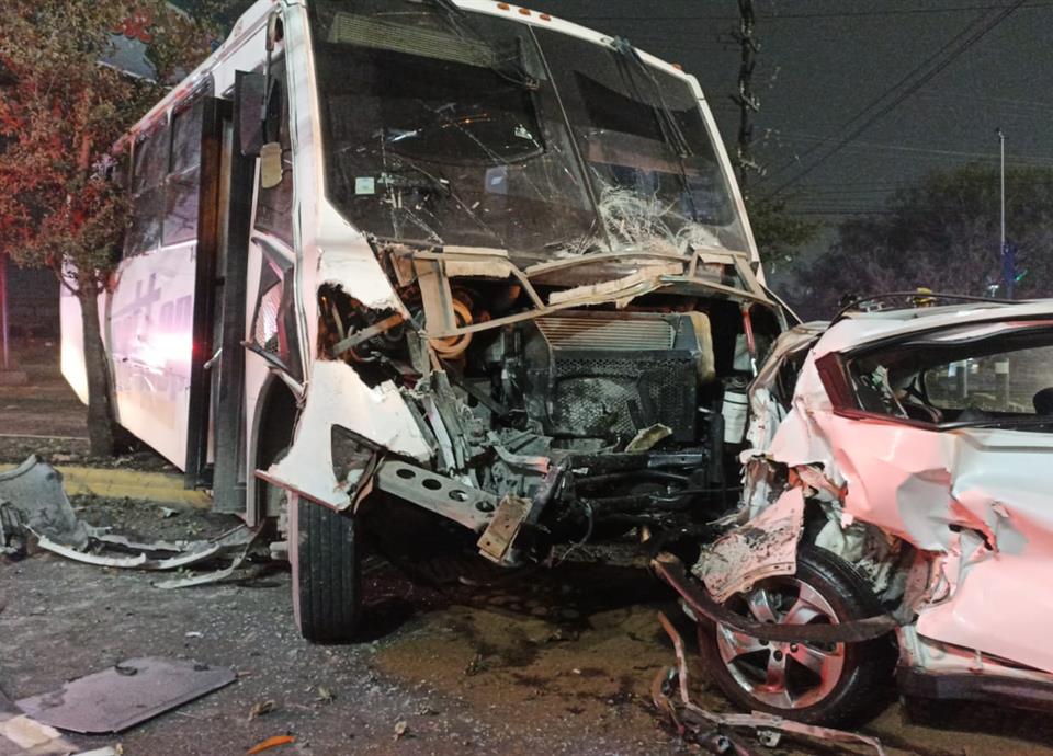 Al menos 33 lesionados dejó un choque múltiple en el que se vieron involucrados cinco autos y dos transportes de personal, anoche en el municipio de García.