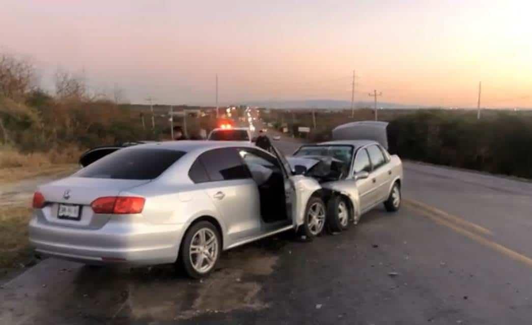 Los vehículos que chocaron son un Volkswagen Jetta SRM 4681 y Chevy SNX 3988, en la Carretera Cadereyta-Allende, a unos metros del Libramiento Alfonso Martínez Domínguez.
