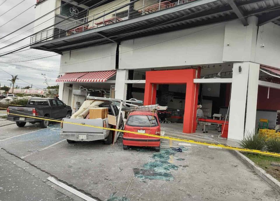 Tras el fuerte estruendo, por lo menos cuatro vehículos estacionados frente al establecimiento fueron daños, al caerles partes de la estructura y los vidrios que se quebraron luego del estallido.