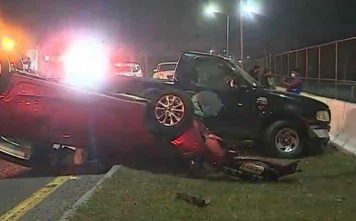 En lugar un vehículo Mazda se estrelló en la parte posterior de una camioneta, para luego terminar volcado.
