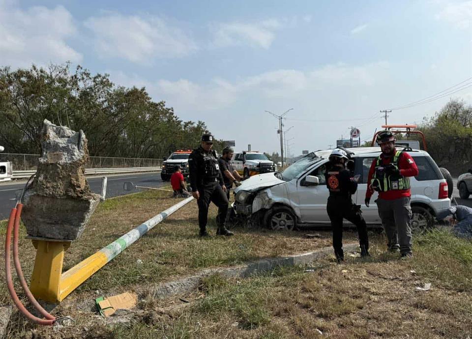 El accidente se registró cuando el conductor perdió el control de la unidad, lo que provocó que saliera de la vía de circulación y se estrellara contra la estructura metálica ubicada a un costado del camino.