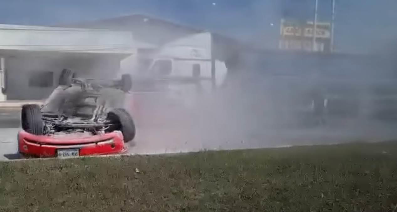 Después de terminar con las llantas hacia el cielo, el auto derrapo sobre el capacete unos cinco metros.