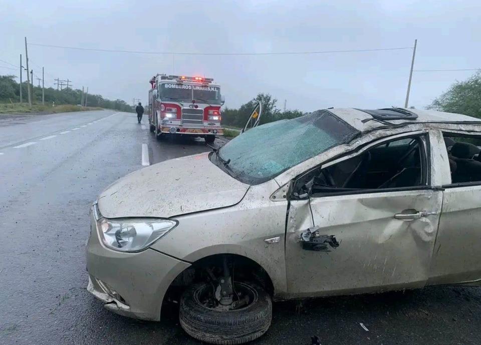 Dos personas lesionadas fue el saldo que dejó la volcadura de un automóvil en un tramo de la Carretera Nacional, en el municipio de Linares.