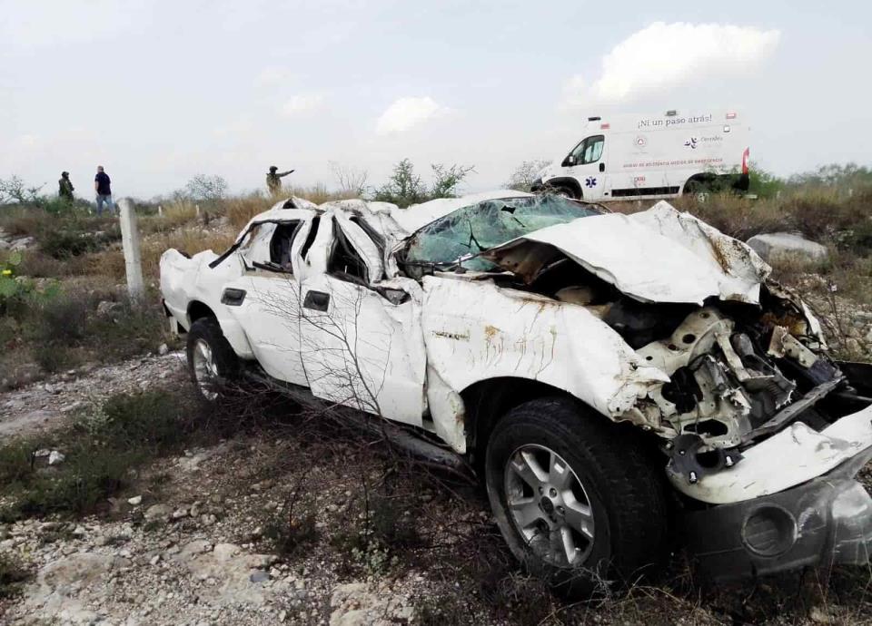 Dos muertos y varios lesionados dejó ayer la volcadura de una camioneta en la Carretera a Miguel Alemán, a la altura del municipio de Cerralvo.