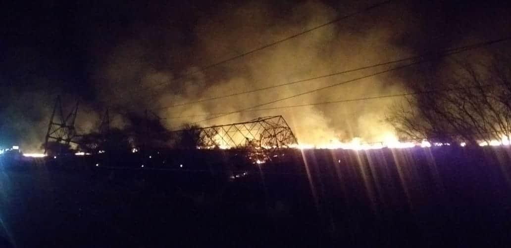 Luego del estrellamiento y la caída de la torre de alta tensión, se produjo un incendio de pastizal, el cual provocó que el paso al ejido San Juan, fuera cerrado por las autoridades de la Secretaría de Vialidad y Tránsito.
