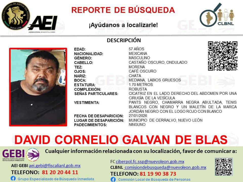 La Fiscalía General de Justicia del Estado inició una carpeta de investigación para intentar ubicar a un chofer originario de la ciudad de Reynosa, quien desapareció mientras trabajaba en un negocio de materiales, ubicado en el municipio de Cerralvo, Nuevo León.