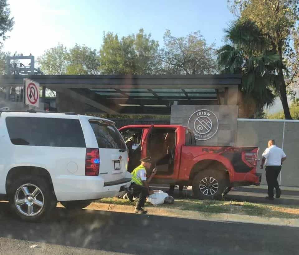 El vehículo lo interceptaron en la Avenida Batallón de San Patricio, entre Real San Agustín y Diego Rivera, municipio de San Pedro, entre un colegio y una plaza comercial.