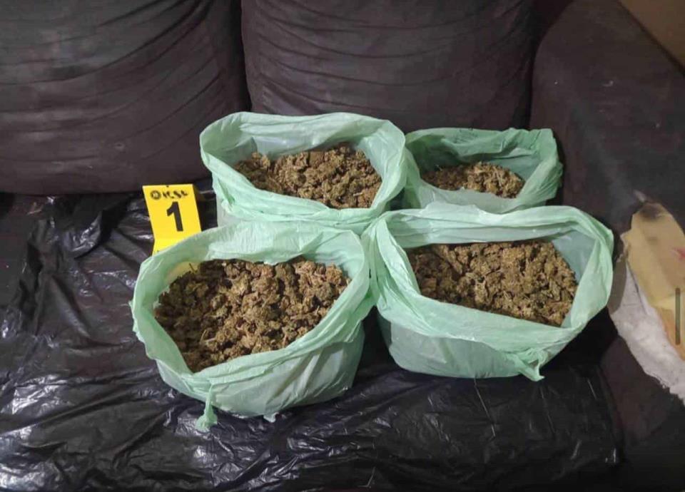 En el cateo se aseguraron cuatro bolsas color verde con hierba verde y seca, diversas bolsas plásticas transparentes, una bolsa transparente con 20 veinte envoltorios con sustancia sólida, un cartucho, dos billetes de 50 y dos de 20, báscula digital gris, una libreta, y dos radiofrecuencias.
