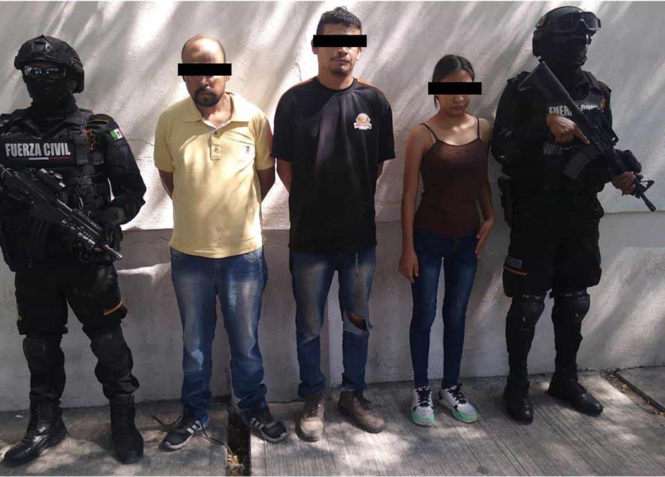 La aprehensión de David, de 39 años, Cristian, de 31, y Norma, de 19 años de edad, ocurrió en calles de la Colonia Santa Isabel, en el citado municipio.