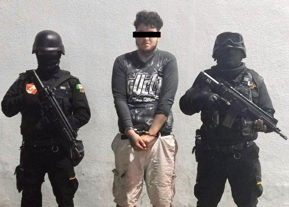 El sujeto se identificó como Miguel "N", de 25 años, en la revisión precautoria a sus pertenencias se encontró un arma tipo Uzi calibre .9 milímetros, con su cargador y dos balas con 15 envoltorios con aparente “cristal”, dinero en efectivo, una báscula digital y una mochila.