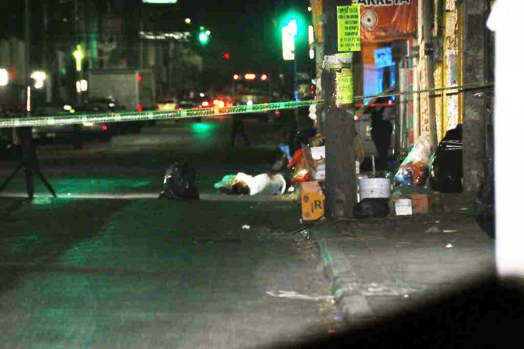 Ahí los locatarios observaron que sobre la acera y la calle estaba el cuerpo de un hombre en medio de un charco de sangre, dando pronto aviso a las autoridades.