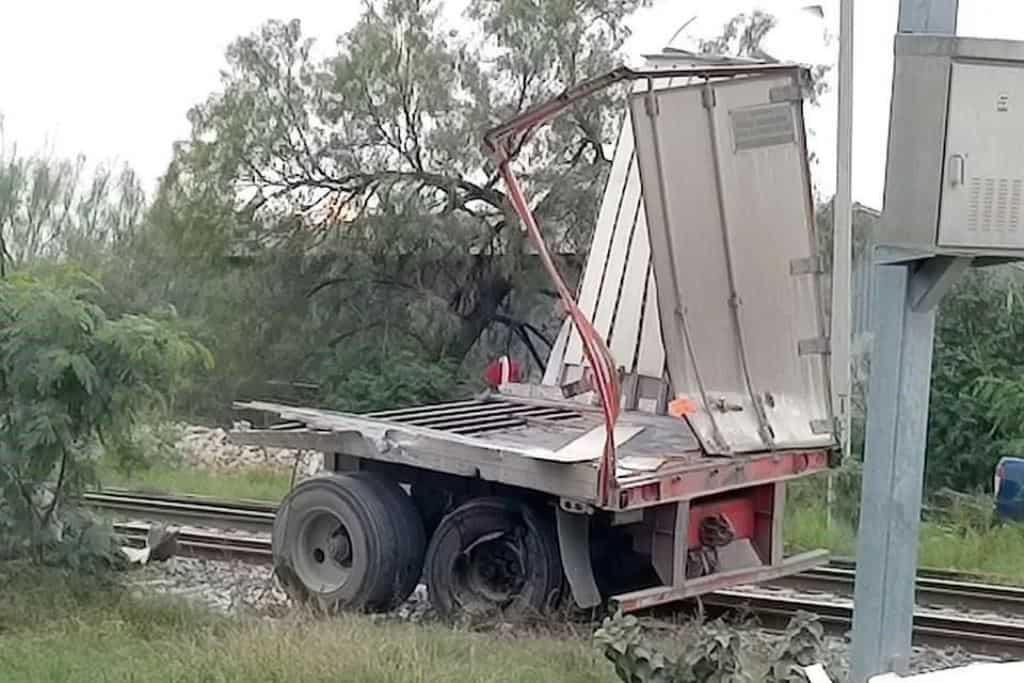 Al pasar sobre la vía ferroviaria, el conductor no se percató que venía le tren a toda velocidad y terminó impactándolo.