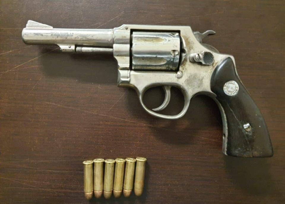 Al inspeccionar a Luis G. le localizan una pistola tipo revólver, color plateado con cacha café, con seis cartuchos hábiles de calibre .38 especial.