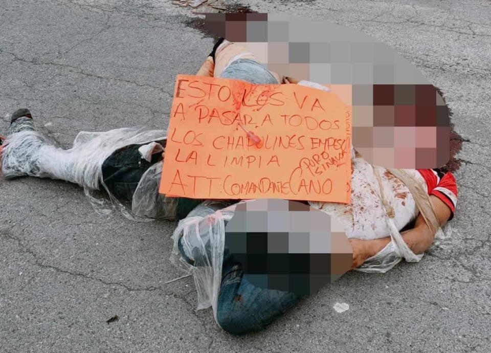 Las personas ejecutadas son tres hombres de entre 30 a 40 años de edad, amarrados de pies, manos, envueltos en plástico y al menos uno de ellos con cinta en la cabeza.