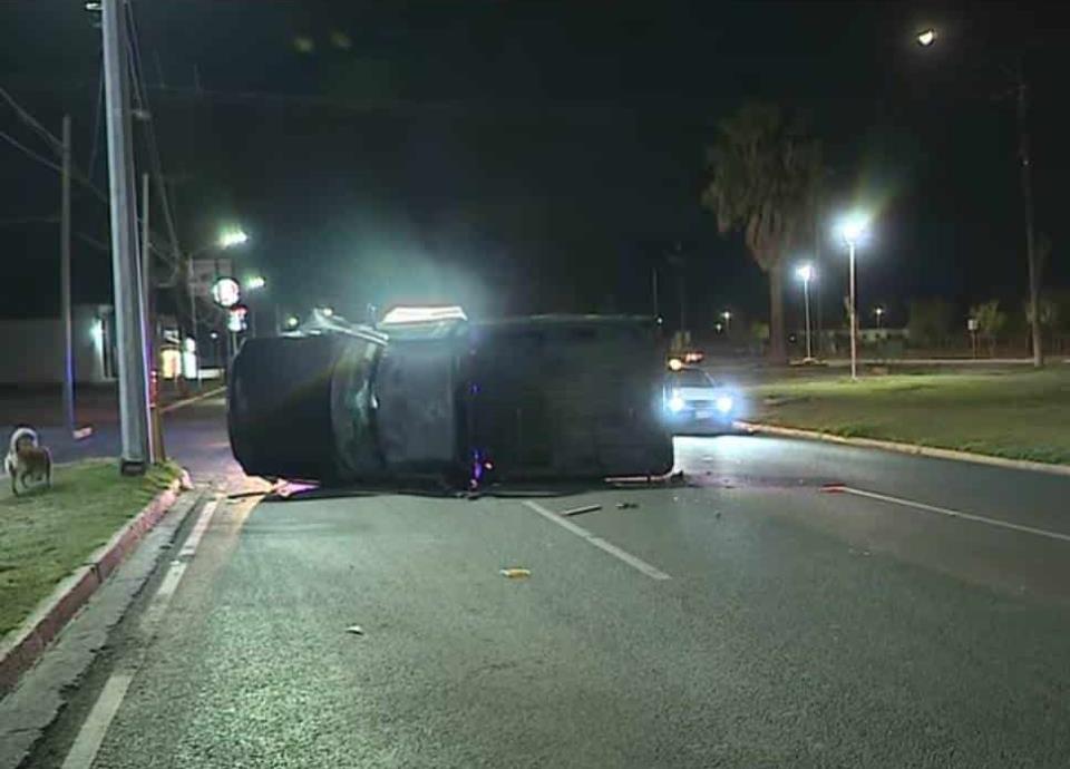 Esto ocasionó que primero se estrellara contra un poste y luego terminara volcándose.