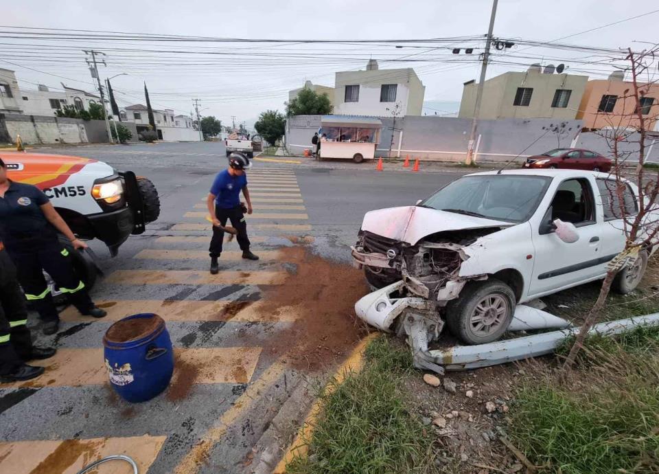 El conductor de un vehículo resultó con diversas lesiones, luego de estrellarse contra un poste de alumbrado público la madrugada de ayer en la Colonia Barrio San Carlos, Ciudad Solidaridad, al norte de Monterrey.