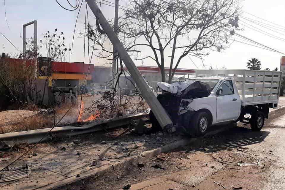 Según las versiones, el conductor perdió el control al circular por la Avenida Lincoln, lo que provocó que se estrellara contra el poste de CFE, que al caer líneas de energía ocasionaron un incendio en el pastizal.
