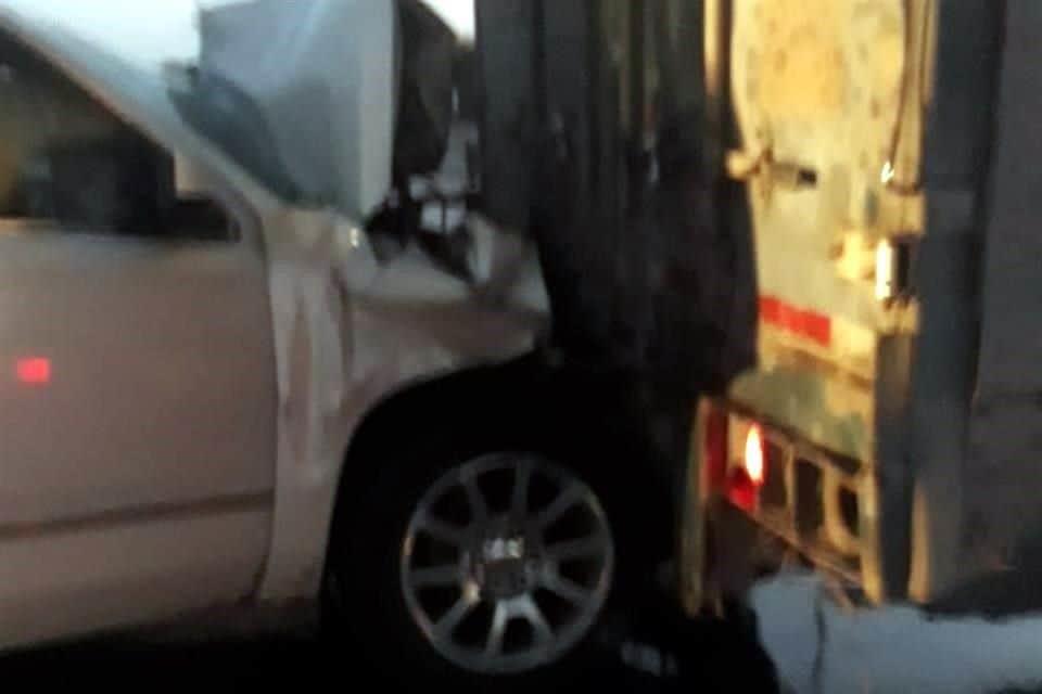 Dos mujeres terminaron con lesiones de consideración al estrellar su camioneta contra la parte trasera de un tráiler, en el municipio de Apodaca.