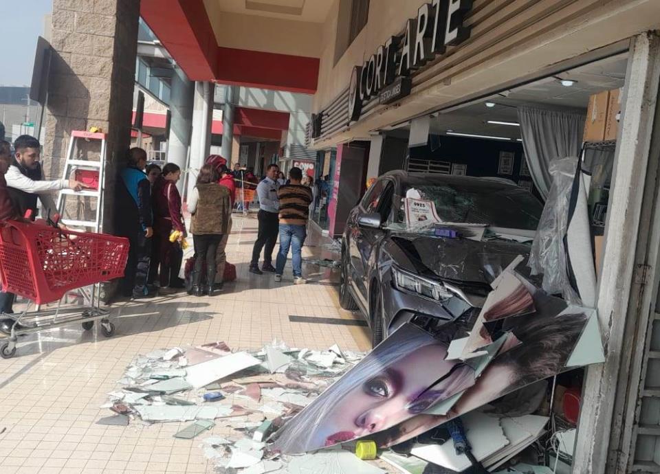 Con el impacto el vehículo destruyó la fachada de al menos dos negocios, uno de ellos una estética unisex.