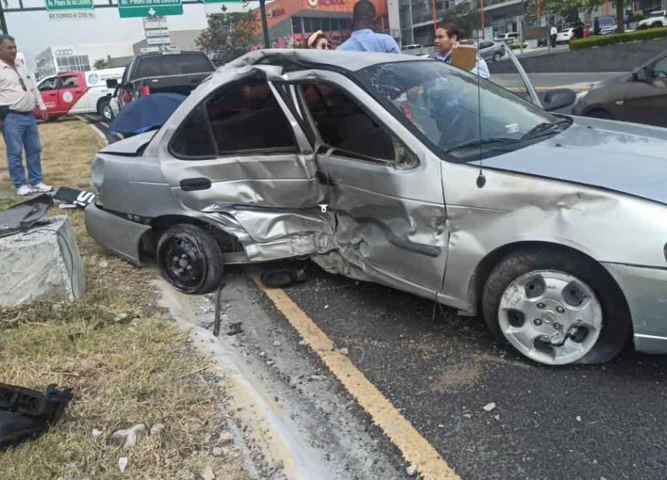 MONTERREY.- Una conductora de origen haitiano, quedó lesionada luego de perder el control de su auto y estrellarse contra una base de concreto en el camellón central de Paseo de los Leones, a la altura de la Cumbres Madeira, al poniente de Monterrey.