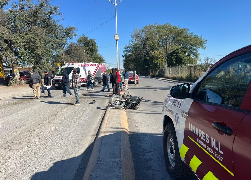 El herido se desplazaba a bordo de una motocicleta de la marca Italika, que terminó con daños materiales de consideración.