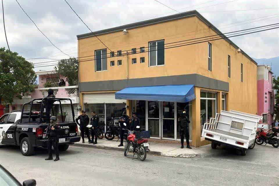 Policías de Fuerza Civil y elementos de la Agencia Estatal de Investigaciones acudieron a indagar el asalto.